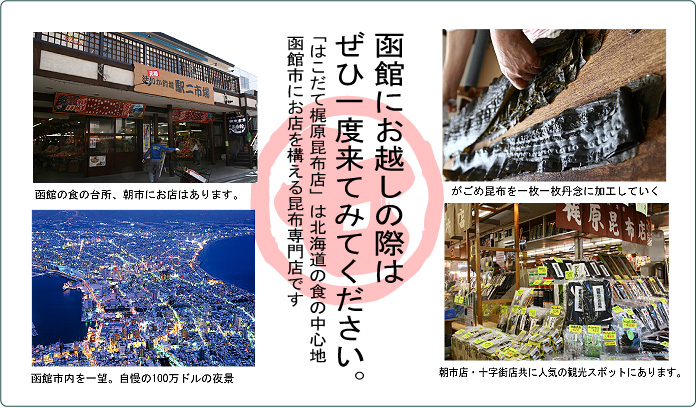 ご注文の際の個人情報は秘密厳守を徹底し不正に第三者 に譲渡あるいは開示することはありません。また、SSLシステムにより不正な情報漏洩を防ぐよう配慮しております。 (株)梶原昆布店 ネット事業部 北海道函館市川原町8番5号 電話番号:0138-83-2428 FAX番号:0138-83-2433 mail:info@kajiwarakonbu.com