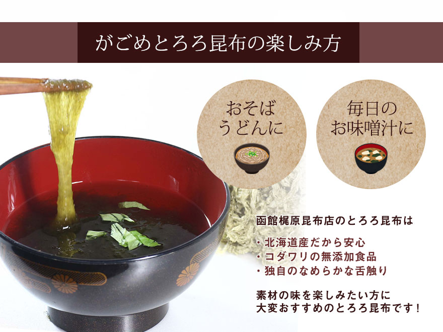 | 原材料 | 真昆布(函館産)、がごめ昆布(函館産)、醸造酢、りんご酢、純りんご酢 |